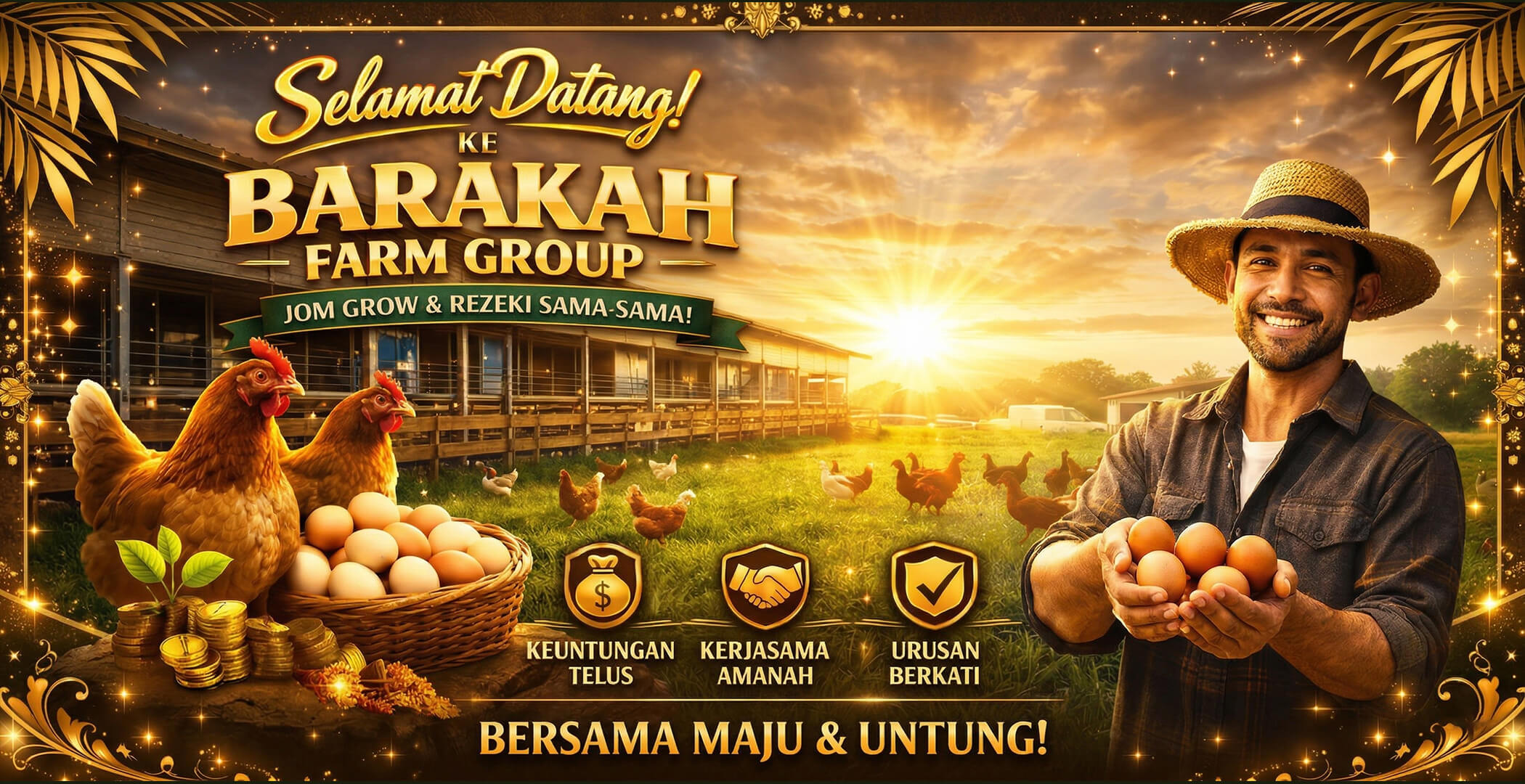 Sertai program kemitraan Barakah Group Farm dan nikmati peluang pelaburan stabil dalam industri ternakan ayam petelur di Malaysia. Modal rendah, hasil nyata, sistem telus, dan pembahagian keuntungan adil.